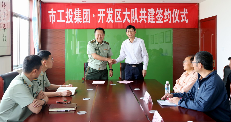 5月25日,集團(tuán)公司與市開發(fā)區(qū)消防大隊(duì)簽訂“雙聯(lián)共創(chuàng)”協(xié)議,雙方將圍繞“兩學(xué)一做”學(xué)習(xí)教育、崗位互換交流、消防培訓(xùn)業(yè)務(wù)交流等方面開展警企共建互動。集團(tuán)公司公司副總經(jīng)理張其海、市開發(fā)區(qū)消防大隊(duì)教導(dǎo)員王正強(qiáng)、大隊(duì)長公浩等出席簽約儀式。