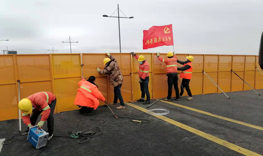 安裝加固步步到位。“今天市政在崗9人。”17號(hào)一大早,市政經(jīng)理高峰就準(zhǔn)時(shí)在公司防疫管理群里報(bào)告人數(shù)。可是此時(shí)這崗位卻設(shè)在狂風(fēng)凌洌、無(wú)遮無(wú)擋的海濱大道上。肆虐的狂風(fēng)吹倒了許多防護(hù)欄,從清晨開(kāi)始,高峰就帶領(lǐng)市政突擊隊(duì)沿著合作路、海濱大道等八個(gè)路段一路巡查一路搶修。面對(duì)狼藉的現(xiàn)場(chǎng),高峰沉著冷靜,有條不紊地帶著大家用力地扶起扶正,再加樁固定。施工現(xiàn)場(chǎng),風(fēng)聲伴著加油的號(hào)聲、汗水伴著有節(jié)奏地敲擊聲,這場(chǎng)景,不正是一幅感人的“錚錚鐵骨鑄堅(jiān)壁”的動(dòng)人畫(huà)卷嗎?自3月5日疫情襲來(lái),市政突擊隊(duì)就馬不停蹄地奮戰(zhàn)在新區(qū)的各個(gè)角落。施工期間,高峰他們白天黑夜地連軸轉(zhuǎn),中午來(lái)不及休息便蹲在路邊吃快餐,為了搶工期,有時(shí)竟加班到深夜12點(diǎn)。短短的10天,他們?cè)谧龊闷渌姓?wù)工作的同時(shí),已經(jīng)先后安裝完成了2000多米的道路圍擋,讓病疫“無(wú)路可逃”。