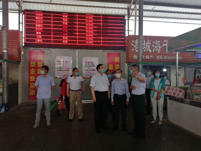 6月26日,連云港市政府副市長徐家保到巨龍農(nóng)貿(mào)市場檢查雙創(chuàng)和防疫工作,集團(tuán)公司黨委副書記、總經(jīng)理胡建明,公司總經(jīng)理孫政權(quán)、副總經(jīng)理伏運(yùn)余陪同檢查。