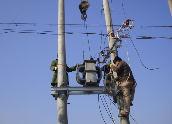 黃化制鈣公司居民區(qū)已有三十多年歷史,目前居住400多戶居民。由于使用年久老化,變壓器容量小、供電半徑大,線路長、線徑細,電壓不穩(wěn),供電效率低。加上居民生活水平提高,用電量增加,供電矛盾日益突出,嚴重影響空調(diào)、冰箱等家用電器正常使用,居民意見很大。考慮到這項工程需投資資金較大,而老居民區(qū)情況復(fù)雜、經(jīng)濟上大多比較困難,為快速化解居民用電矛盾,讓他們過上祥和、舒心的春節(jié),臺北供電所自籌資金,領(lǐng)導(dǎo)親自到現(xiàn)場勘察,擬定整改方案。該所人員全部出動,雇用工具車三臺、吊車兩輛,運送一臺100千伏安變壓器、兩個配電箱和10根電桿,自帶導(dǎo)線等材料趕赴施工現(xiàn)場。在居民的支持和配合下,克服了巷口復(fù)雜、圍墻歪斜、樹枝凌亂、布局很不規(guī)則等困難,奮戰(zhàn)多日,安裝一臺新變壓器,將原來的一條線進入改為三條線進入,增加供電功率,擴大供電容量。通過進戶測試,均達到用電標準,給居民帶來了冬天的溫暖。