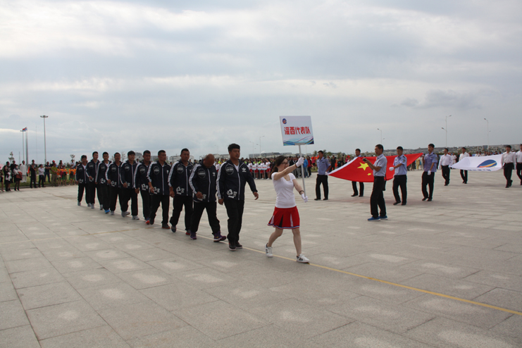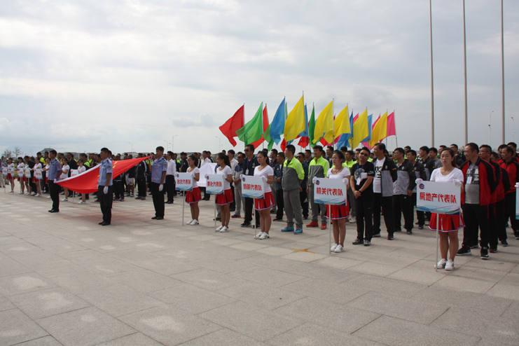 9點整開始舉行開幕式,在雄壯的《運動員進行曲》中,8名司旗手分別手托國旗和集團公司司旗,24名彩旗手高舉五彩旗首先入場。緊接著,灌西代表隊、臺北代表隊、供電代表隊、黃化制鈣代表隊、利海代表隊、氯堿代表隊、徐圩代表隊、機關代表隊、華茂代表隊、房地產代表隊、氨綸代表隊、新材料代表隊12支代表隊、130余名運動員以及裁判組成員依次入場。