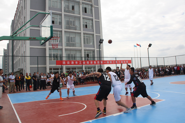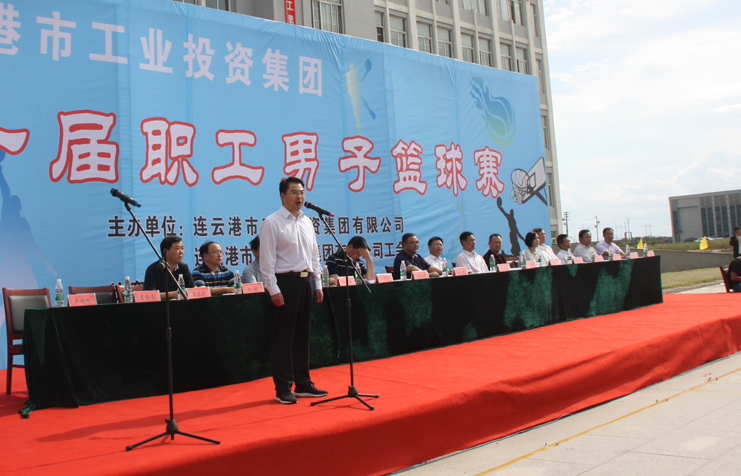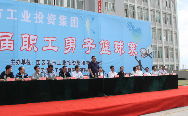 集團公司董事長、黨委書記楊龍宣布,連云港市工業投資公司集團第一屆職工男子籃球賽正式開幕。