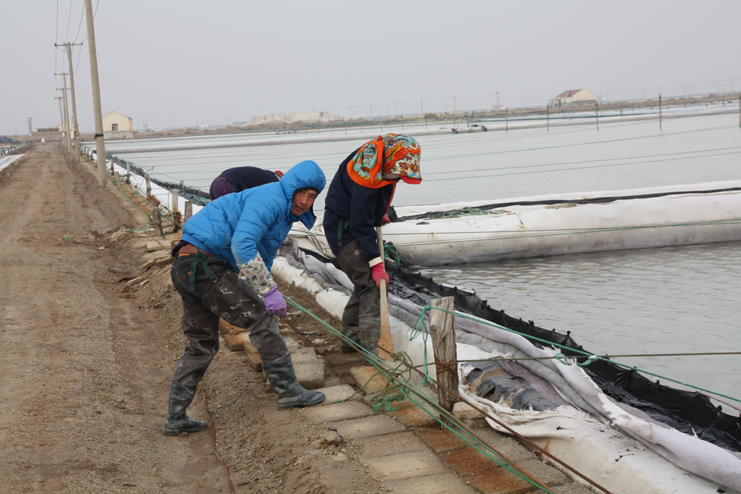2月6日上午,在新河制鹽分公司的九班,我們看到工人們正在下馬格內和格,為盡快灌池生產打好基礎,在十班,工人有的正在清除硫酸鈣,有的修整結晶池埝,而在八班的灘頭,一臺挖掘機正在鹽廩上裝鹽銷售,日曬制鹽公司廣大員工掀起春季生產熱潮,處處都是忙碌景象。據了解,隨著市場回暖,日曬制鹽公司的原鹽銷售較前兩年同期無論是在數量上,還是在價格上都有所增長。為了抓住這一難得的銷售機遇,不斷擴大市場占有率,公司計劃組織兩個制鹽分公司在近期開展扒鹽工作,以確保原鹽銷售工作不中斷。為此,各生產單位緊緊圍繞這一工作重心,在抓好日常生產的同時,精心做好扒鹽前的各項準備工作,努力確保扒鹽工作正常有序開展。與此同時,部分尚不具備扒鹽條件的班組則抓緊時間做好除硫池清理、撤格池板的整平以及土工布更換等工作,為春季生產做好各項準備工作。(封楊)
