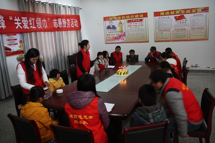 活動中,志愿者們點燃蠟燭,與孩子們共同過一個集體生日,并與他們真誠溝通,聆聽他們的心聲,了解他們當前的生活和學習狀況,勉勵他們克服困難、積極進取,希望他們能夠快樂生活、快樂學習、快樂成長。同時,志愿者們還把準備好的書包文具等學習用品送到孩子們的手中,并與結對孩子合影,讓這初春多了一絲溫暖。