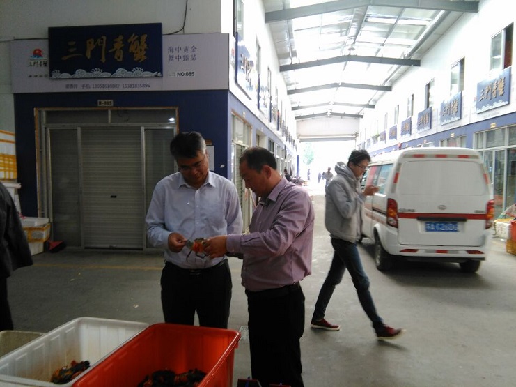 在三門和溫嶺,考察組一行分別參觀了“海水綜合養殖”池塘、貝類育苗基地、沙蠶養殖基地,三門青蟹批發市場,詳細了解青蟹、血蛤養殖、銷售情況,養殖規模、養殖效益,并分別同養殖大戶進行了現場交流。王德志董事長在考察時指出:灌西養殖面積大,但整體上還屬于粗放型養殖階段,無論是養殖品種、養殖地畝單價都有很大的上升空間,我們有必要充分借鑒浙江沿海養殖的先進經驗,在海水養殖上實現產品多樣化、精養化、降低養殖風險,努力提高池塘發包地畝單價,實現養殖效益的再提升。據了解,浙江沿海地區近年來,通過大引進、大調整、大開發,養殖業風生水起。三門養殖塘面積達9萬多畝,隨著養殖模式轉型,品牌提升。最明顯的就是養殖地畝費增幅明顯,如今池塘地畝費已在3000-4000元之間,先后獲得中國青蟹之鄉,浙江對蝦之鄉等榮譽。