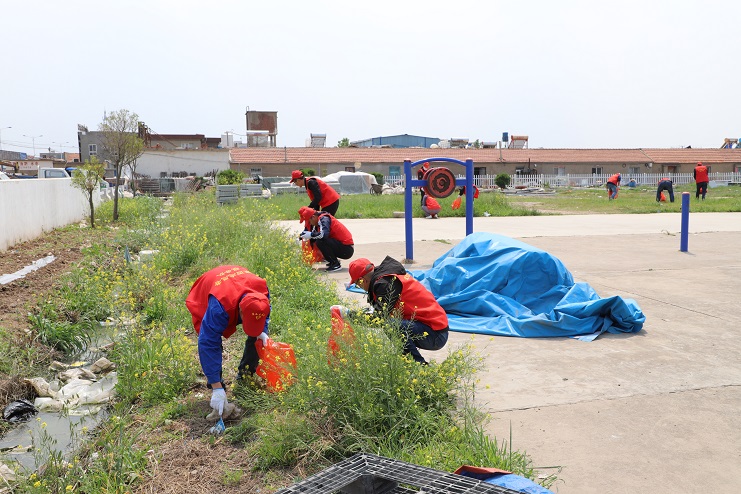 活動中,青年志愿者們頭戴小紅帽、身穿印有灌西志愿者服務隊字樣的紅色馬甲,在陽光的照耀下顯得格外醒目。參與此次活動的青年志愿者們早早的就來到了勞動現(xiàn)場,她們手持鐵锨等勞動工具,認真對職工文化廣場及其周邊排水溝道中的垃圾進行清理。雖然現(xiàn)場不時發(fā)出陣陣惡臭,但是大家依然堅持將垃圾全部清理干凈,為生活在周邊和早晚在此鍛煉的居民營造一個干凈、整潔的居住環(huán)境。