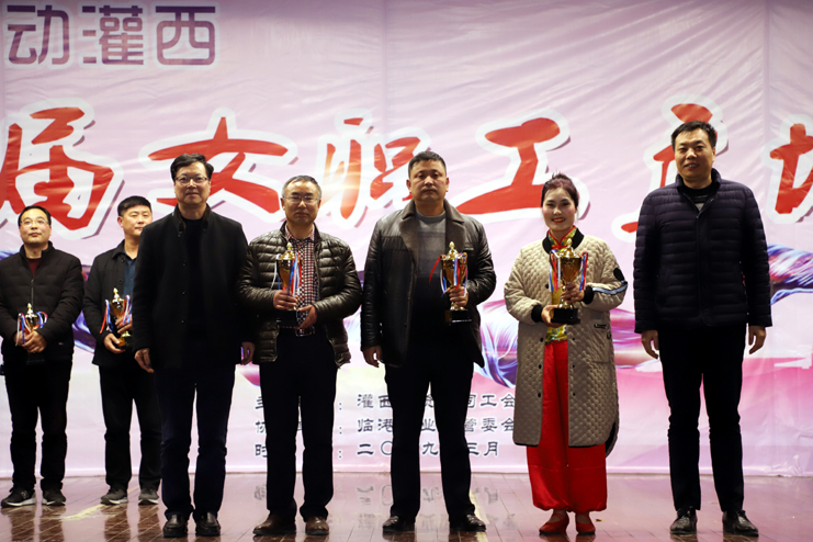 評委通過舞蹈編排、動作難度、服飾、音樂效果等評分標準,對8支廣場舞舞蹈隊表演的節目進行了打分,并評選出一、二、三等獎。灌西投資公司黨委書記、董事長、總經理李國文、副總經理古浩光、許太冬、王順友、紀委書記、工會主席王宏、總經理助理劉殿龍,西旺水產實業公司總經理茆慶軍等領導分別為獲獎隊伍頒發了獎杯。