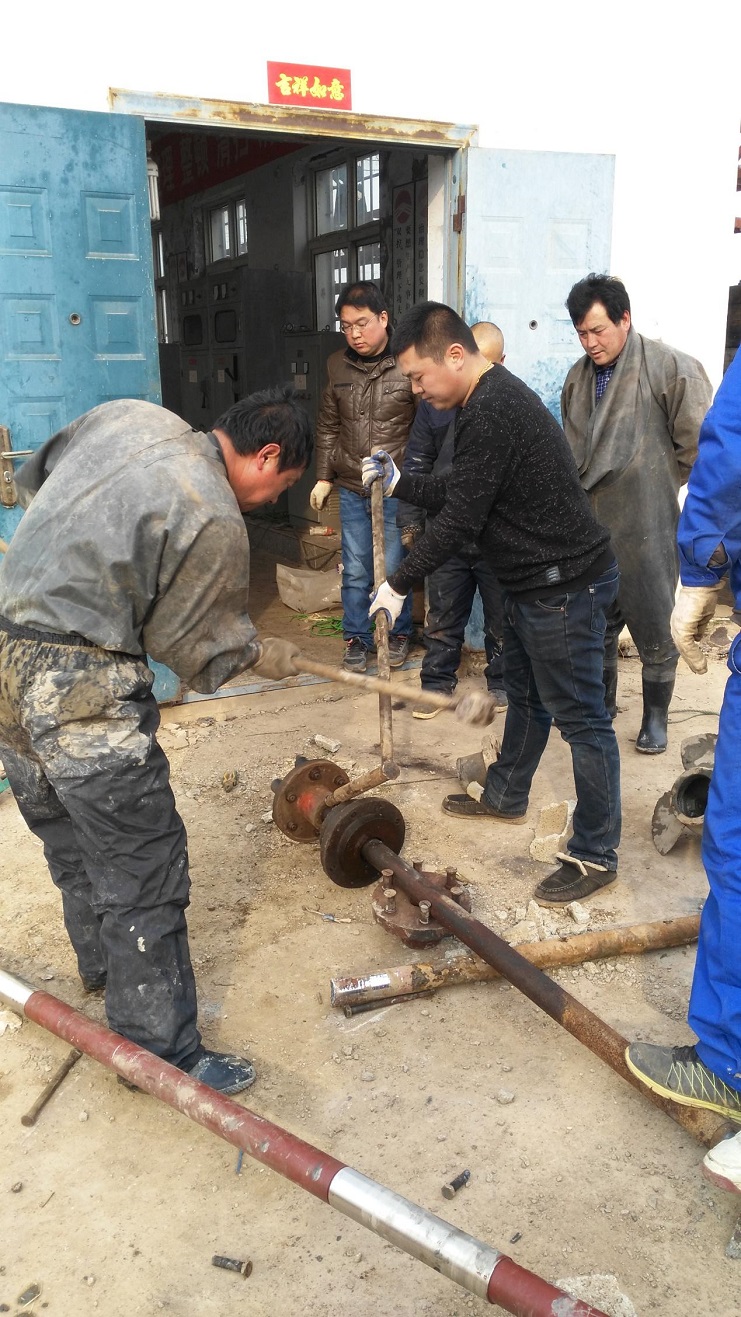 為確保3月底西旺公司淡水供給,從3月中旬開始,機電服務(wù)公司組織人力,對4臺55KW水泵進行大修。在市勞模王緒華帶領(lǐng)下,機修人員范成軍、黨員楊軍、蘇輝等不怕臟和累,舊配件拆除、新配件組裝,每個環(huán)節(jié)都能做到安全、認真、仔細。經(jīng)過10天多搶修,4臺機泵大修結(jié)束,為正常開機揚水提供了保障。(圖為大修現(xiàn)場)