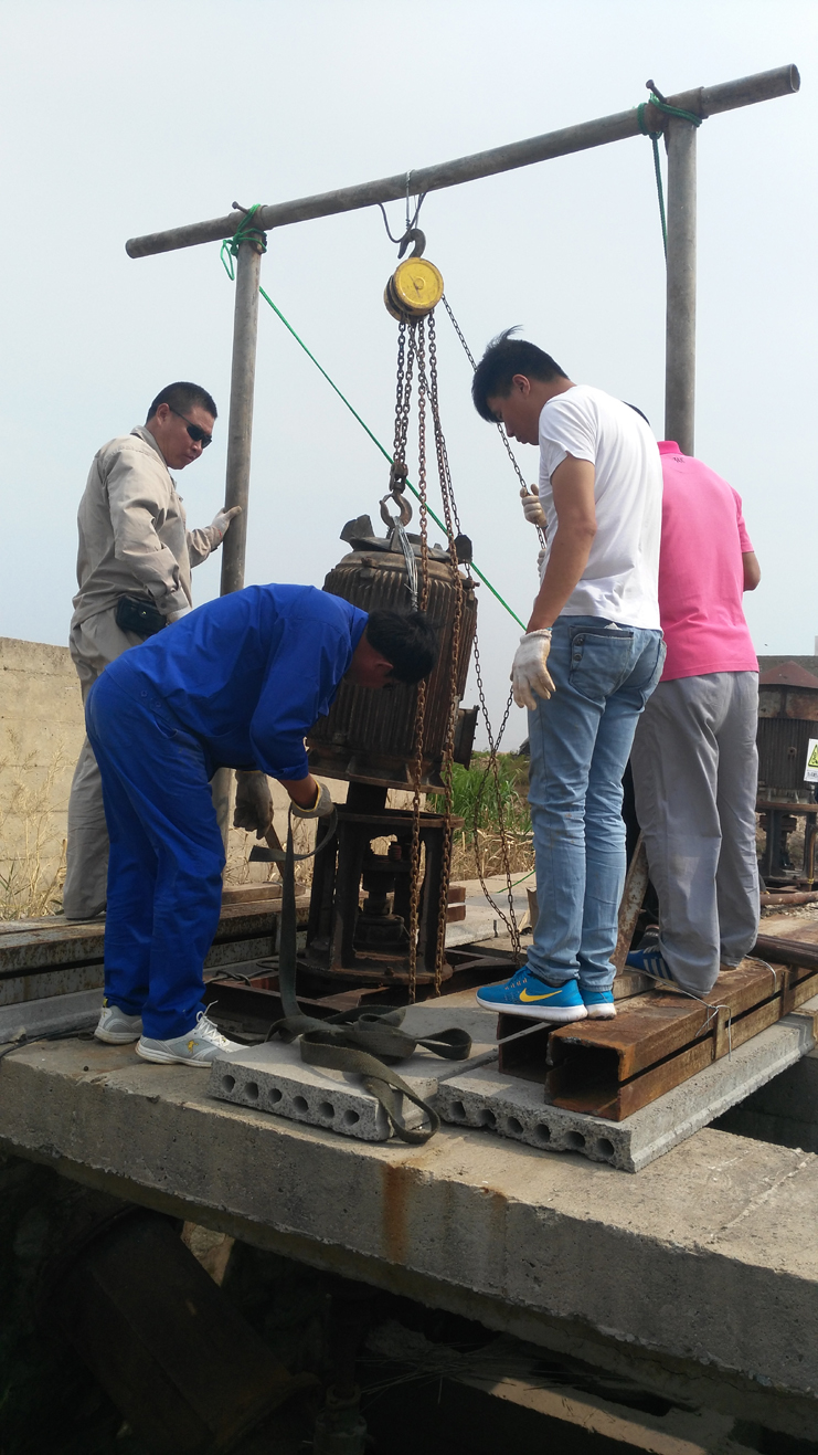 隨著氣溫升高,養(yǎng)殖淡水需求量增大,機泵高負荷運行,損壞率增大。日前大河處于低水位期,機電服務(wù)公司抓住當前有利時機,積極組織人力對炅威3臺淡水機泵進行搶修。與雇傭蛙人潛水修理相比,節(jié)約費用3000元。(機電服務(wù)公司)