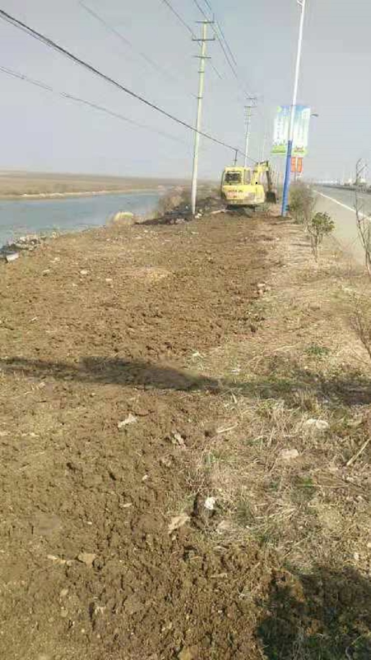 挖機在324省道兩側進行整治