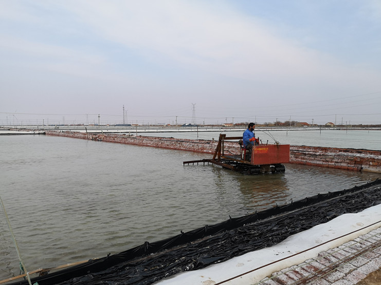 破碴勤、破碴透,才能保證原鹽生產(chǎn)的旺產(chǎn)增收。進(jìn)入2月下旬,雖然受新冠肺炎疫情影響,相關(guān)工作較往年延遲,但新河制鹽分公司科學(xué)組織,嚴(yán)密安排,根據(jù)春季扒鹽節(jié)奏,合理調(diào)配破碴機(jī)械,率先啟動(dòng)原鹽破碴工作。在十班破茬碴現(xiàn)場(chǎng),班組結(jié)晶池內(nèi)熱火朝天,只見(jiàn)一臺(tái)臺(tái)破碴機(jī)快速來(lái)回穿梭,正在對(duì)擬春扒格塊進(jìn)行機(jī)械破碴。勞模創(chuàng)新工作室成員、班長(zhǎng)匡洪忠查看破碴的鹽池板后,臉上露出滿(mǎn)意的微笑,他說(shuō):“通過(guò)近幾年的小改小革,現(xiàn)在機(jī)械破碴格塊只要一個(gè)小時(shí)就全部到位,而且質(zhì)量比人工破碴好,大大地減輕了職工勞動(dòng)負(fù)荷。”