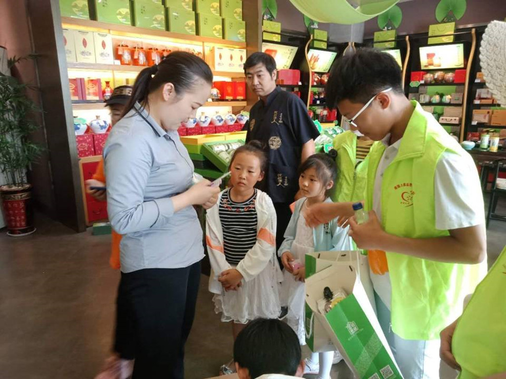 志愿者帶領小朋友一起義賣愛心物資,所得費用購買愛心牛奶。另外一部分志愿者在東高地飯店開展為環衛工人、外賣小哥以及其他戶外工作者包粽子活動。本次活動共計包了600多個愛心粽子,煮好后分別和義賣款所購買的牛奶一起送到環衛工人等高溫工作者手里。