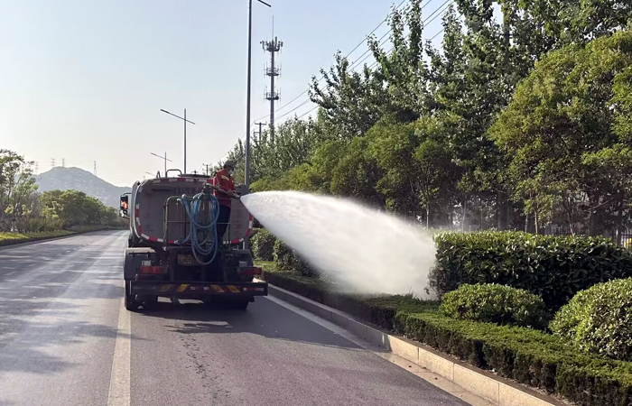 多舉措,全力抗旱保苗。該分公司二個班組,以科學方式進行澆灌作業,避開高溫時段澆水灼傷綠植根系。傍晚采用“人歇機不歇”的方式,對新栽植苗木、受旱較嚴重的苗木優先、多次澆灌,做到澆足澆透澆勻。對于喬木行道樹、綠化帶較密的區域,工人們采取2到3人一組徒手拖拽膠皮水管挨棵澆灌,多種形式相結合的措施,對園區綠地、綠化帶進行循環澆水。力爭做到抗旱不停步,澆水無死角,確保綠化苗木安全度夏。