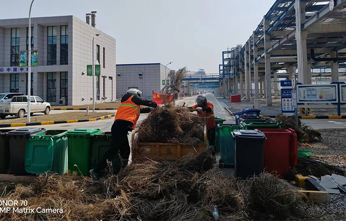 為營(yíng)造石化園區(qū)內(nèi)部?jī)?yōu)美整潔靚麗環(huán)境,保潔分公司聞令而動(dòng),第一時(shí)間趕赴中化倉(cāng)儲(chǔ)公司院內(nèi),高質(zhì)高效完成突擊清理任務(wù)而努力奮戰(zhàn)。