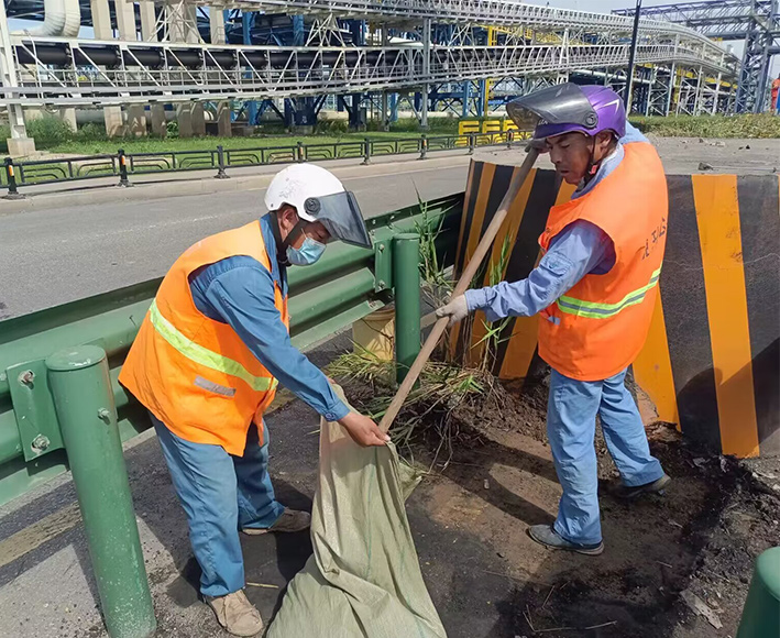 示范引領(lǐng)處處呈現(xiàn)。節(jié)前環(huán)境大治理工作開展以來,全公司下掀起“大干15天、再創(chuàng)新佳績”勞動競賽活動。道路一線黨員示范作用有力得以彰顯。黨員張學(xué)軍、龔飛、姚功、陳小軍等同志工作中爭先恐后,臟活累活沖鋒在前,呈現(xiàn)出熱火朝天的繁忙工作景象。園區(qū)班組、女子班組突擊清理道路兩邊的雜草、岔路口泥土,大型車輛拋灑石子。清理路面達(dá)3000多米長,清理打包深秋梧桐落葉達(dá)100多袋,確保行車安全與環(huán)境治理同步進(jìn)行。